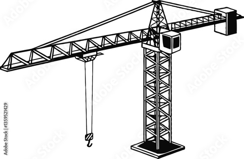 construction crane, made of lines, second dimension, no background color, all shape black color line art B