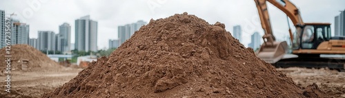 Construction Site with Pile of Dirt and Heavy Machinery in Urban Environment