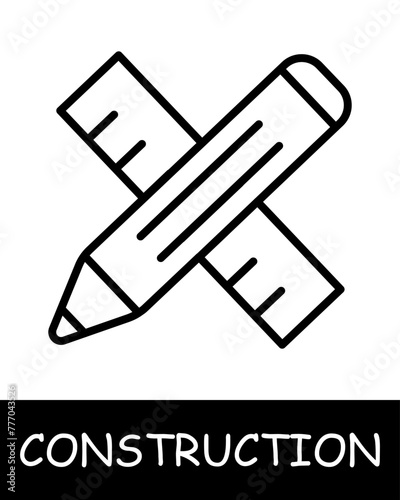 Construction, technology icon. Construction equipment, pencil, ruler, etc., building. Industrial machinery, heavy duty vehicles, and tools for construction projects concept.