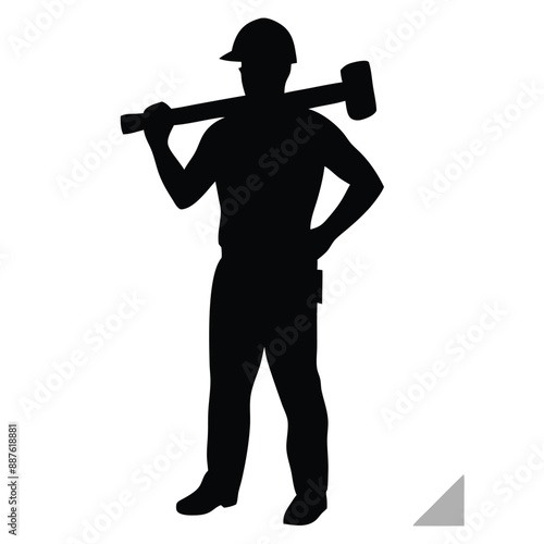 Construction worker silhouette vector holding a hammer on a white background