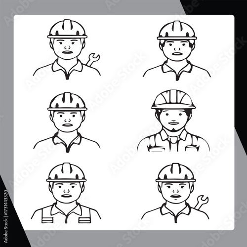 "Construction Worker Thin Line Icon Set – Engineer, Builder, Safety Helmet, Tools Vector Pack"
