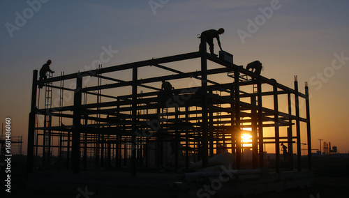 Construction Workers Silhouetted Against a Golden Sunset