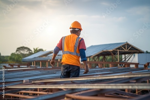 Construction workers working in a roof.