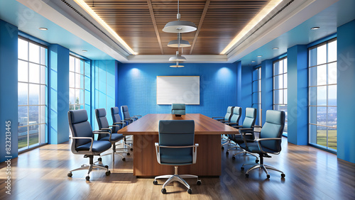 Constructivist Style Conference Room on Blue Background. Perfect for: Architectural Design Conferences, Art and Design Exhibitions, Business Innovation Summits.