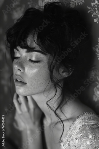 Contemplative Beauty in Black and White Illustration. Sorrow, Discouragement, Depression Concept. Generative AI.