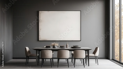 Contemporary dining area with abstract art and minimalist decor, artistic dining, modern aesthetic