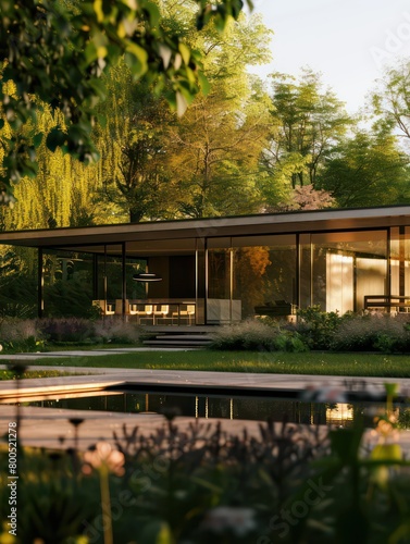 contemporary house with a minimal structure and sleek design, excellent harmony with the nature