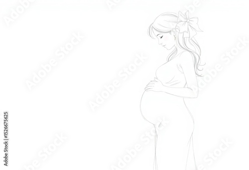 Continuous line art drawing of pregnant figure, vector outline illustration for Mother's Day, shape, curve