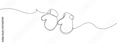 Continuous line baby gloves line art vector illustration with transparent background editable stroke.
