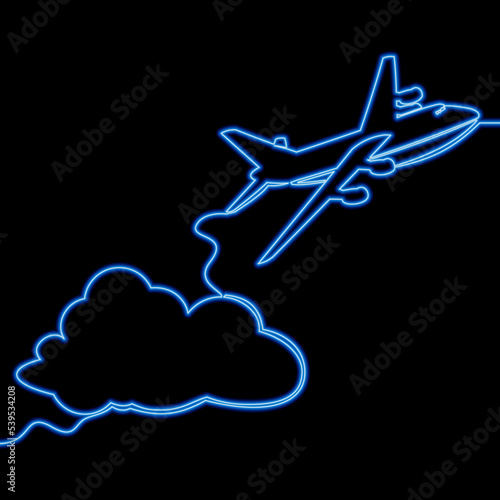 Continuous line drawing Airplane travel Trip flight sign icon neon glow vector illustration concept