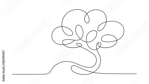 Continuous Line Drawing of a Tree with Abstract Leaves in a Minimalist Style Design