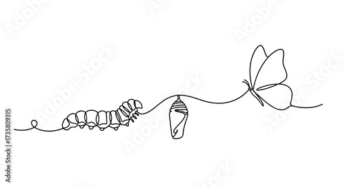 Continuous line drawing of caterpillar cocoon and butterfly metamorphosis concept vector illustratio
