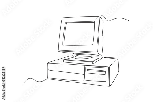 Continuous one-line drawing classic 70s computer. 70s style concept single line draws design graphic vector illustration