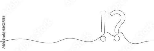 Continuous single line drawing of a question mark and an exclamation mark. Editable line
