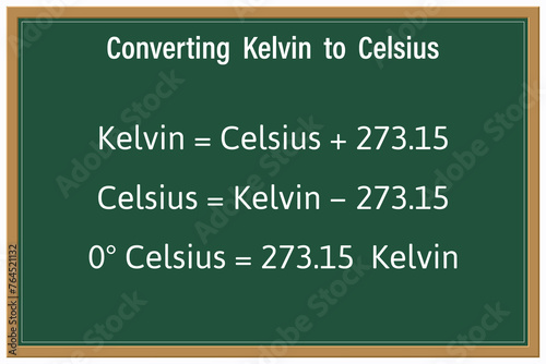 Convert Kelvin to Celsius on a green chalkboard. Education. Science. Formula. Vector illustration.