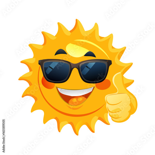 Cool Cartoon Sun Mascot with Sunglasses Giving Thumbs Up Vector