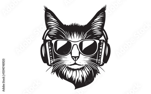 Cool Cat DJ Logo with Headphones and Sunglasses Minimalist Music Icon Design