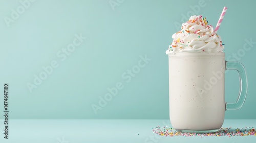 Cool creamy milkshake blended drink with ice and sprinkles refreshing treat bright environment