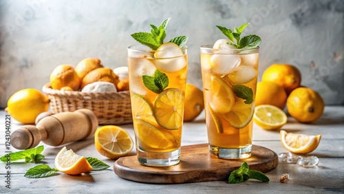 Cool lemon ginger iced tea, a refreshing summer treat.