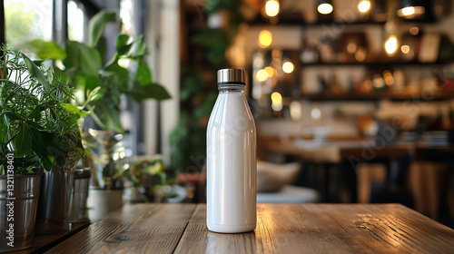 Copy Space Banner with Reusable Water Bottle on Wooden Table – Promoting Eco-Friendly Habits