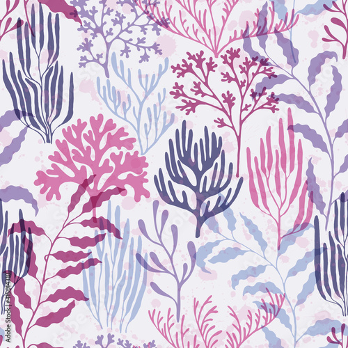 Coral reef seamless pattern., Tropical coral reef branch silhouette elements.