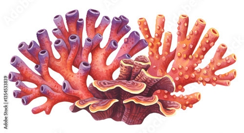 Corals set watercolor on isolated white background. Beautiful Marine clipart. Colorful hand painting coral closeup