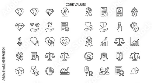 Core values and business related icons isolated on white background