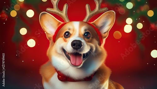 Corgi mit einem Rentiergeweih