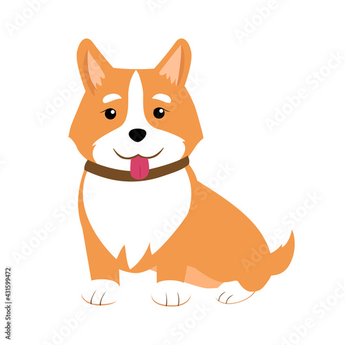 Corgi vector illustration on a white background. Сheerful dog sitting, smiling with tongue out