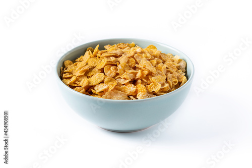 Corn flakes in a blue bowl isolated on white background