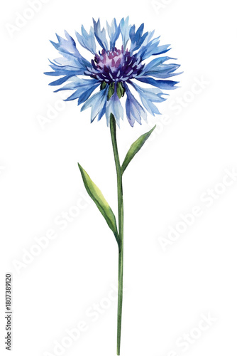 Cornflower with tall green stem delicate wild meadow flower illustration for botanical natural garden design