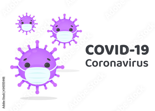 Corona virus cartoon character wearing a mask to prevent the spread of the flu