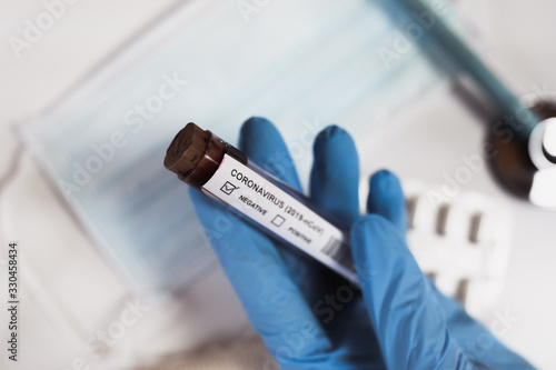 Coronavirus blood test. Doctor holding a test tube. 2019-nCoV. Covid.