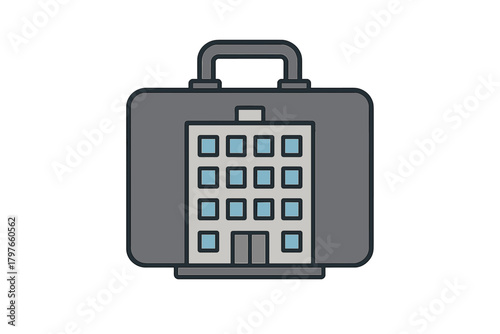 Corporate building structure inside a business briefcase