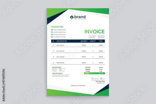 Corporate green color invoice design