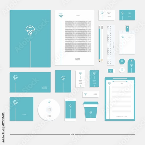 Corporate identity with the sign of jellyfish. Stationery set.