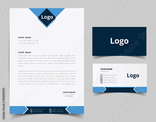 Corporate Letterhead and Business Card Set, Elegant and minimalist style business template design and Stationery set. Full Vector.