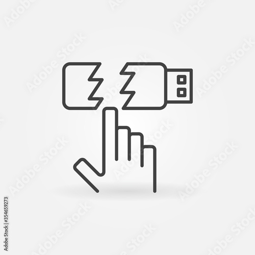 Corrupted USB Flash Drive and Hand vector outline icon or symbol