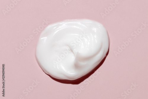 Cosmetic cream smear on a light pink top view. Skincare product texture swipe smudge