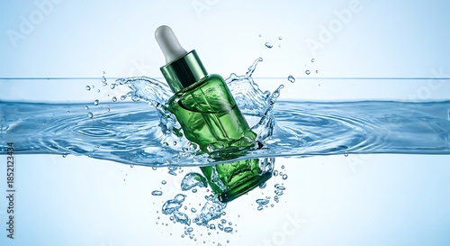 Cosmetic Serum Dropper Bottle Splashing in Clear Water