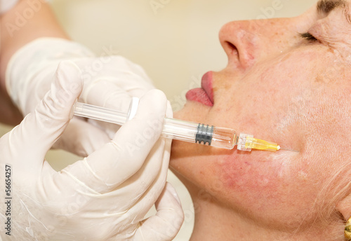 Cosmetic treatment with syringe injection in a clinic
