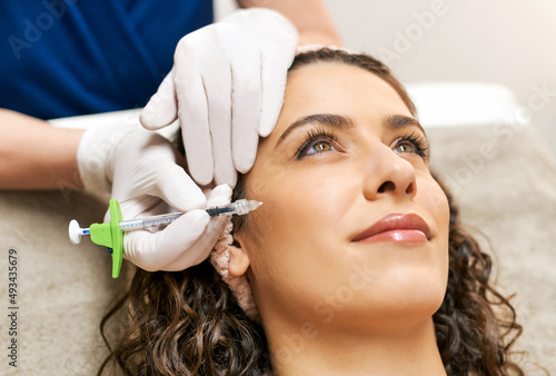 Cosmetologist making botox injection to client during skin care treatment