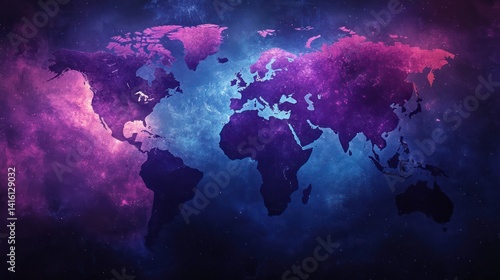 Cosmic cartography: a vibrant world map rendered in celestial hues and textures