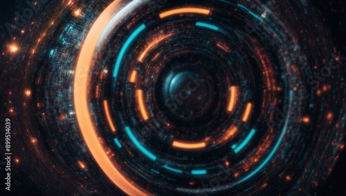 Cosmic Circuitry: A mesmerizing dance of light and energy, where vibrant orange and blue hues intertwine within a futuristic technological marvel.