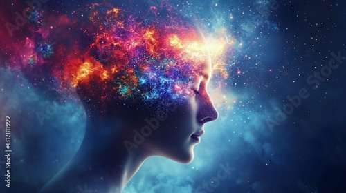 Cosmic Consciousness: A Woman's Mind Illuminated by Celestial Nebulae and Stellar Energy