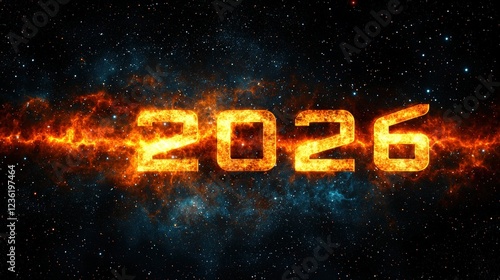 Cosmic Swirling Dust in 3D Forming the Year 2026 with Vibrant Colors in a Starry Background