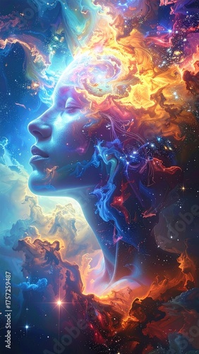Cosmic Woman Profile Vibrant Nebula Portrait