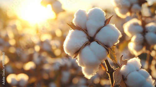 cotton field bathed in warm sunlight, capturing the beauty and symbolism of growth, agriculture, and rural life. The endless rows of cotton plants symbolize prosperity and the fruits of labor