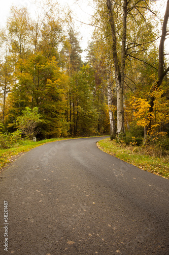 Country road along trees in the lush forest