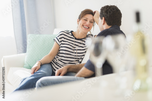 Couple sitting on sofa